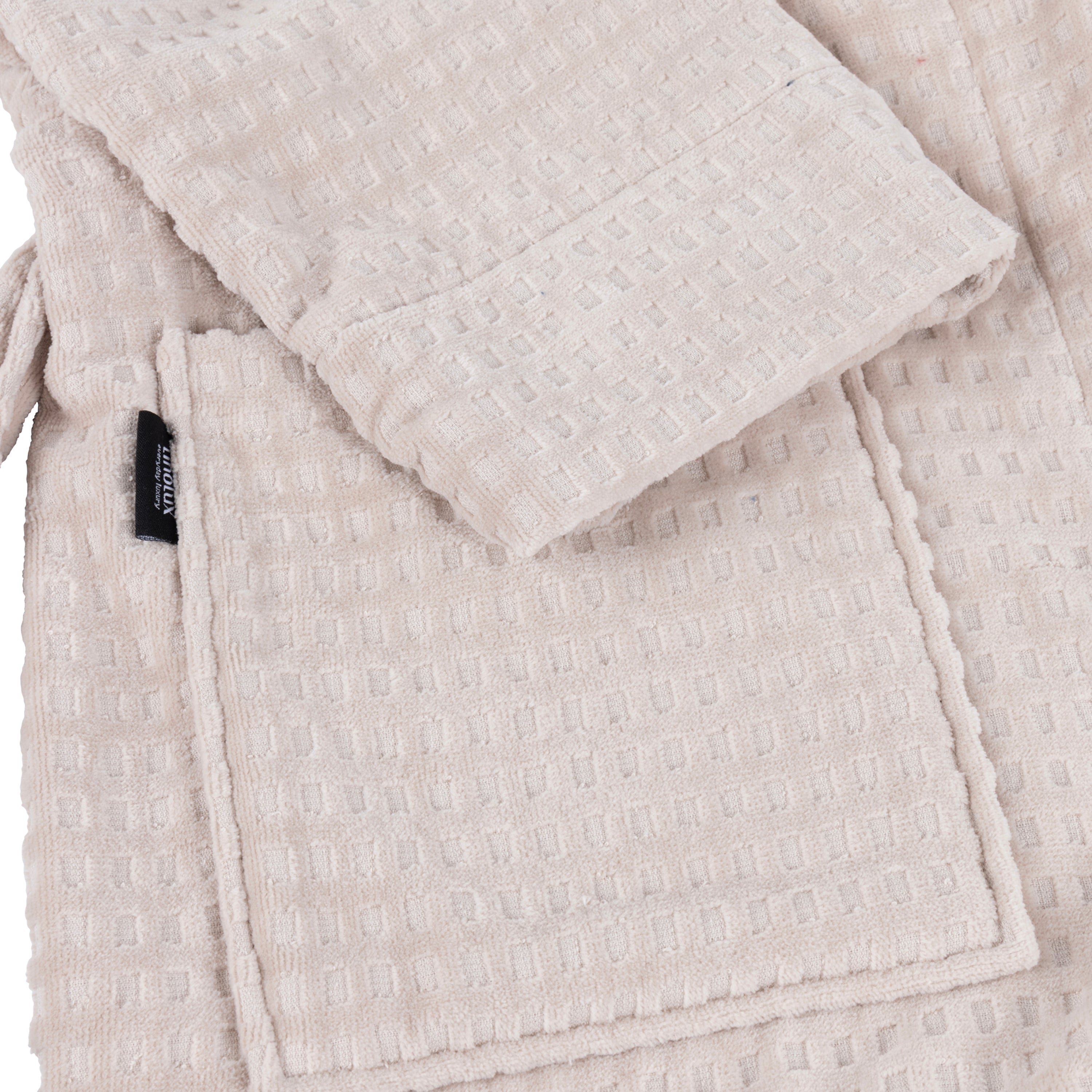 Linolux badjas Platinium stone is gemaakt van een 100% katoenen velours met ingeweven blokje. Dit geeft een speels effect bij een uni badjas. Luxe badjas met sjaalkraag voor hem en haar. Met opgestikte zakken en ophang lus.