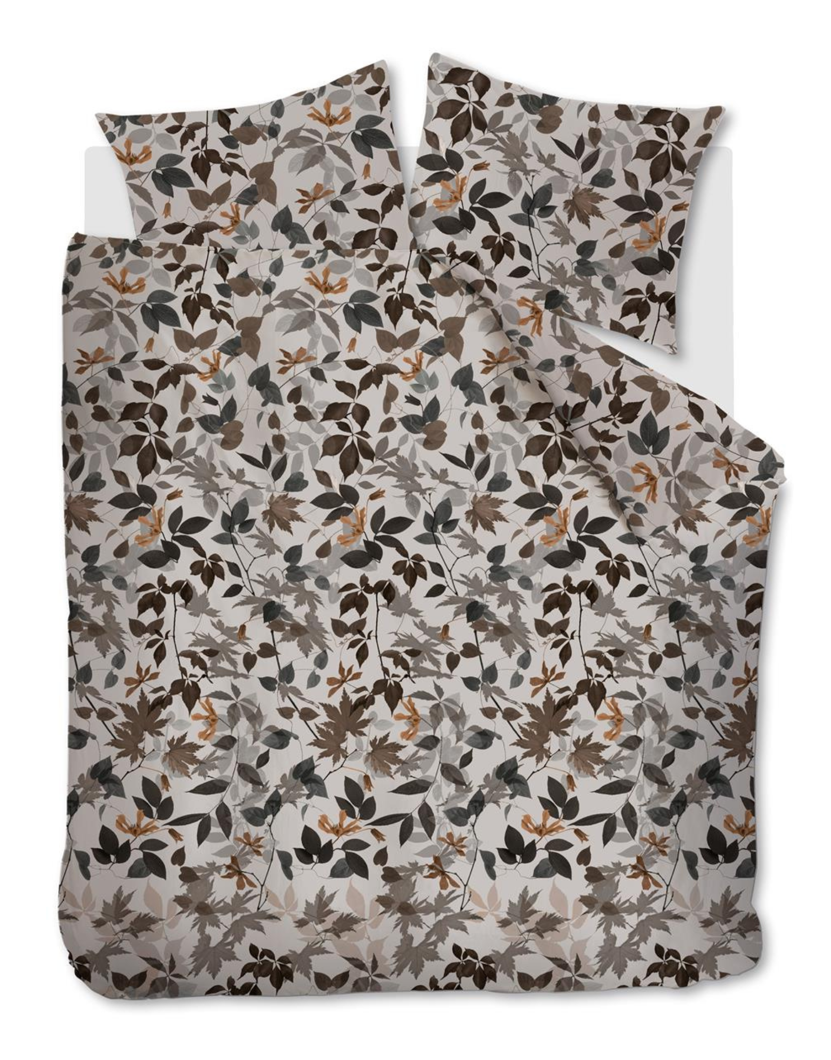 Het Beddinghouse Gigi dekbedovertrek heeft een mooi all-over blad dessin. In grijs/ taupe zand combinatie. Beide zijde hetzelfde dessin. Het zachte en soepele katoensatijn (220 count) zorgt voor luxe slaapcomfort. Inclusief 1 of 2 kussenslopen.