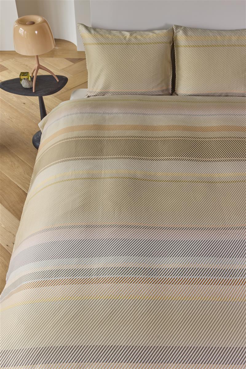 Het Kardol Beaming dekbedovertrek heeft een stijlvol banen dessin. Het dessin heeft verschillende natuur kleuren en in de verschillende banen zitten diverse dessintjes. De binnenzijde is aan beide zijde gelijk. Gemaakt van 100% katoensatijn, dat zacht, soepel en licht glanzend is voor een luxe slaapcomfort. Lengte 260 cm met ruime instopstrook. Inclusief 1 of 2 kussenslopen met verkleind dessin voor een extra luxe uitstraling.