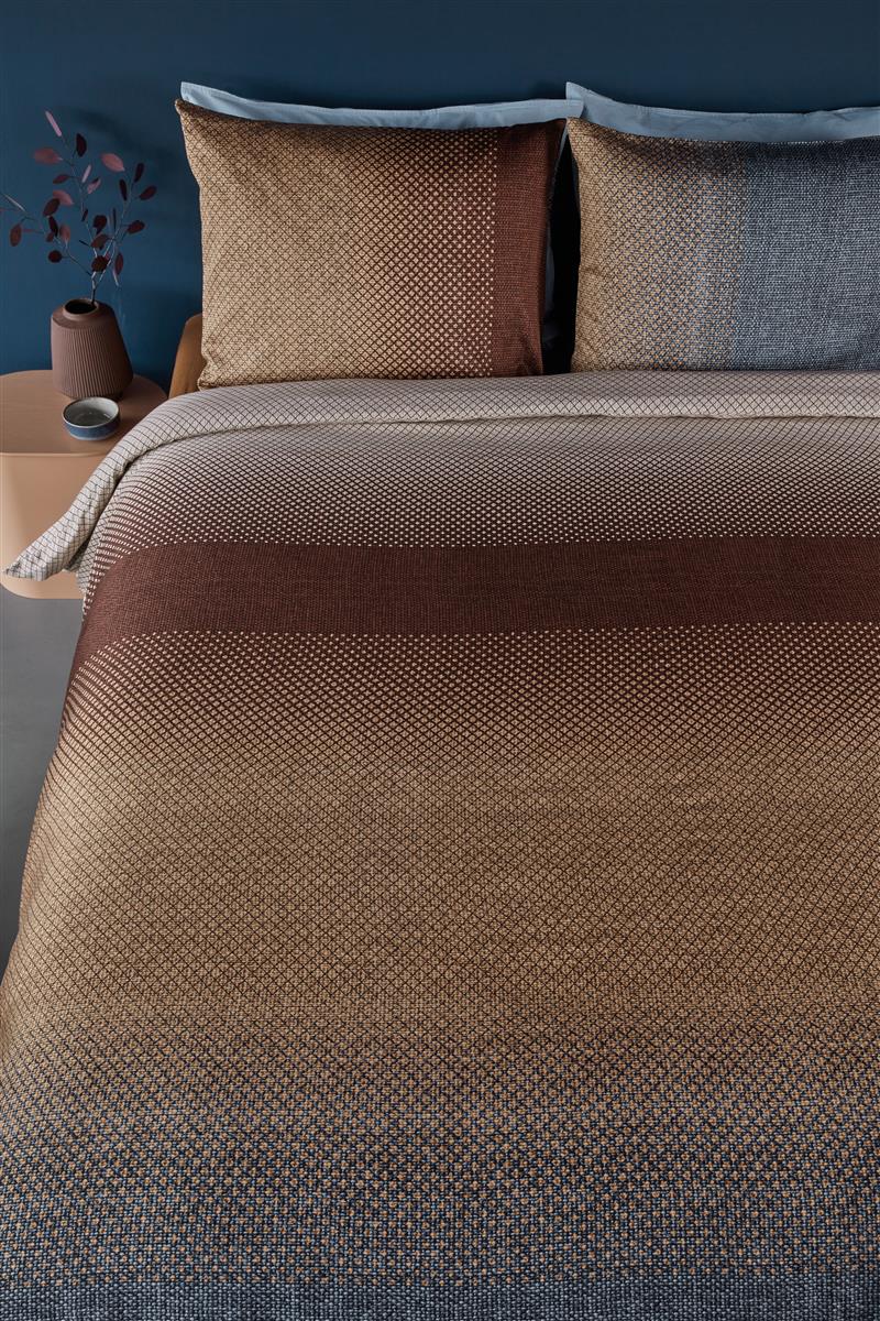 Het Beddinghouse Duco dekbedovertrek heeft een subtiel banen dessin met kleine blokjes. Stoere kleurstelling van blauw met rood. Aan beide zijde hetzelfde dessin. Het zachte en soepele katoensatijn (220 count) zorgt voor luxe slaapcomfort. Inclusief 1 of 2 kussenslopen.
