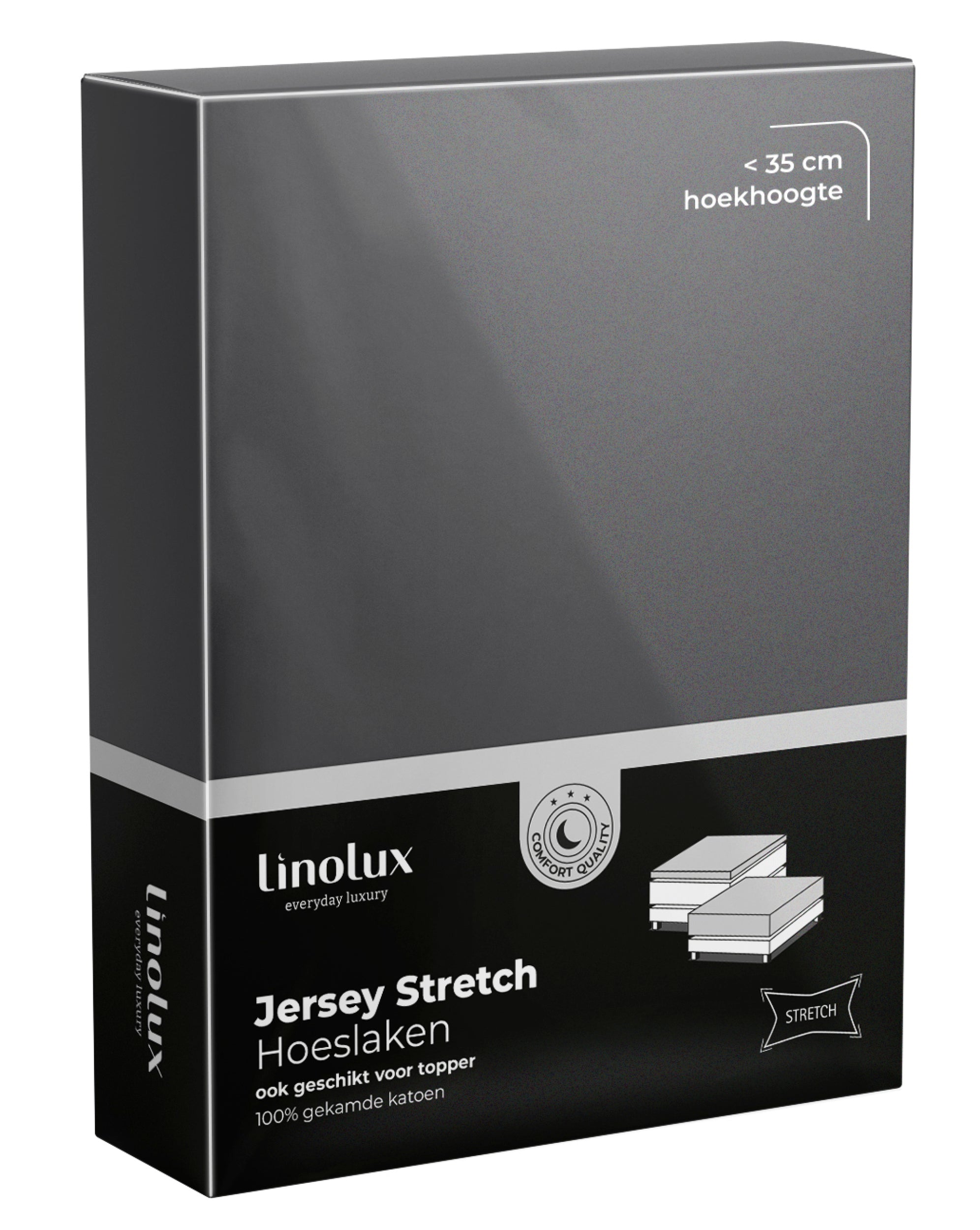 Hoeslaken Linolux Jersey Stretch dark grey is een perfect passend hoeslaken met rondom elastiek. Waardoor het hoeslaken strak om de matras blijft zitten en daarom uitermate geschikt voor verstelbare bedden. De hoeslakens hebben een hoekhoogte van 35cm, dus zeer geschikt voor wat dikkere matrassen tot 30cm.