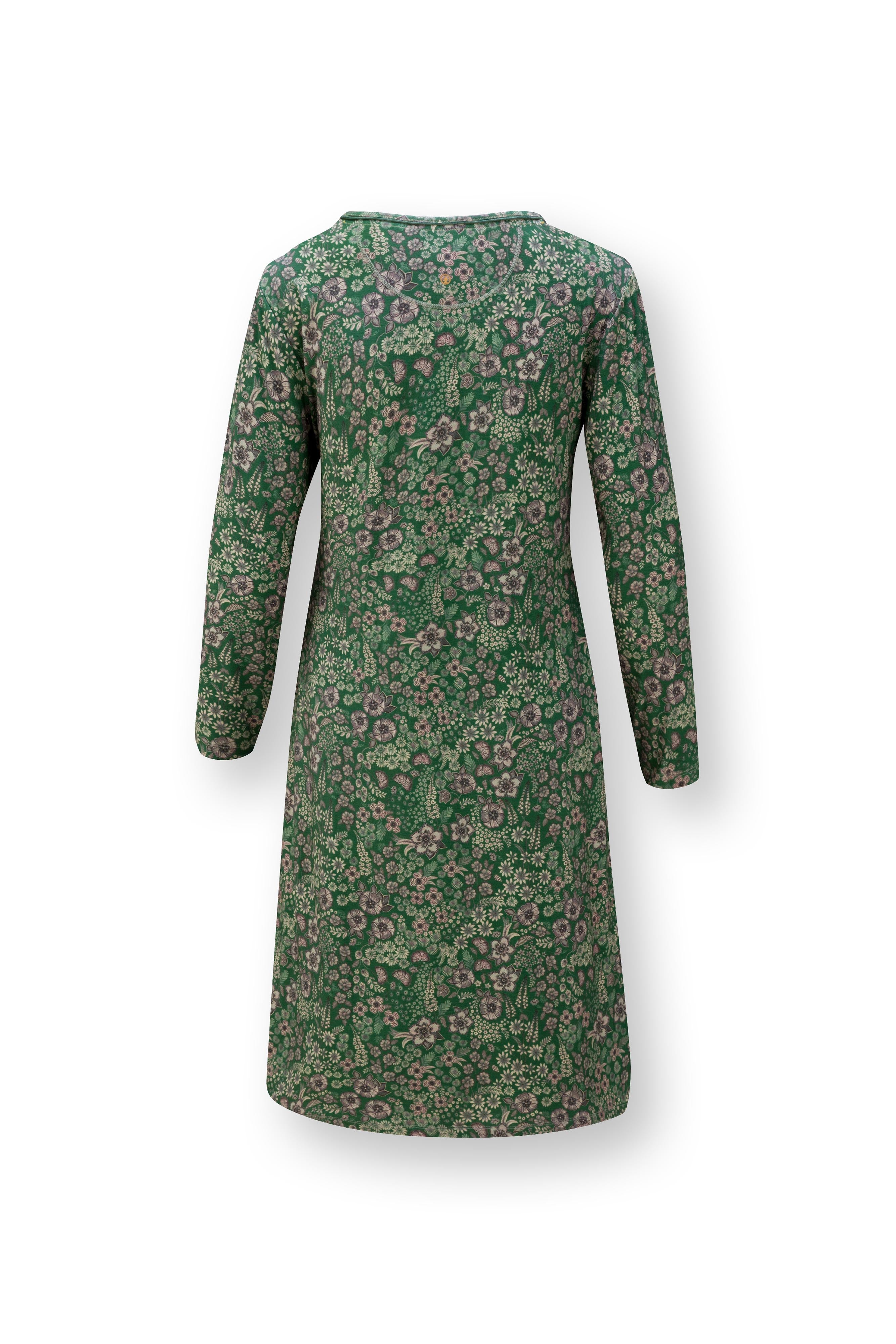 Chique nachthemd van Pip Studio. Heeft een bloemetjes dessin in donker groen. V hals en lange mouw. De lengte is bij maat M 110cm. Kwaliteit: 95% Viscose/ 5% Elastan