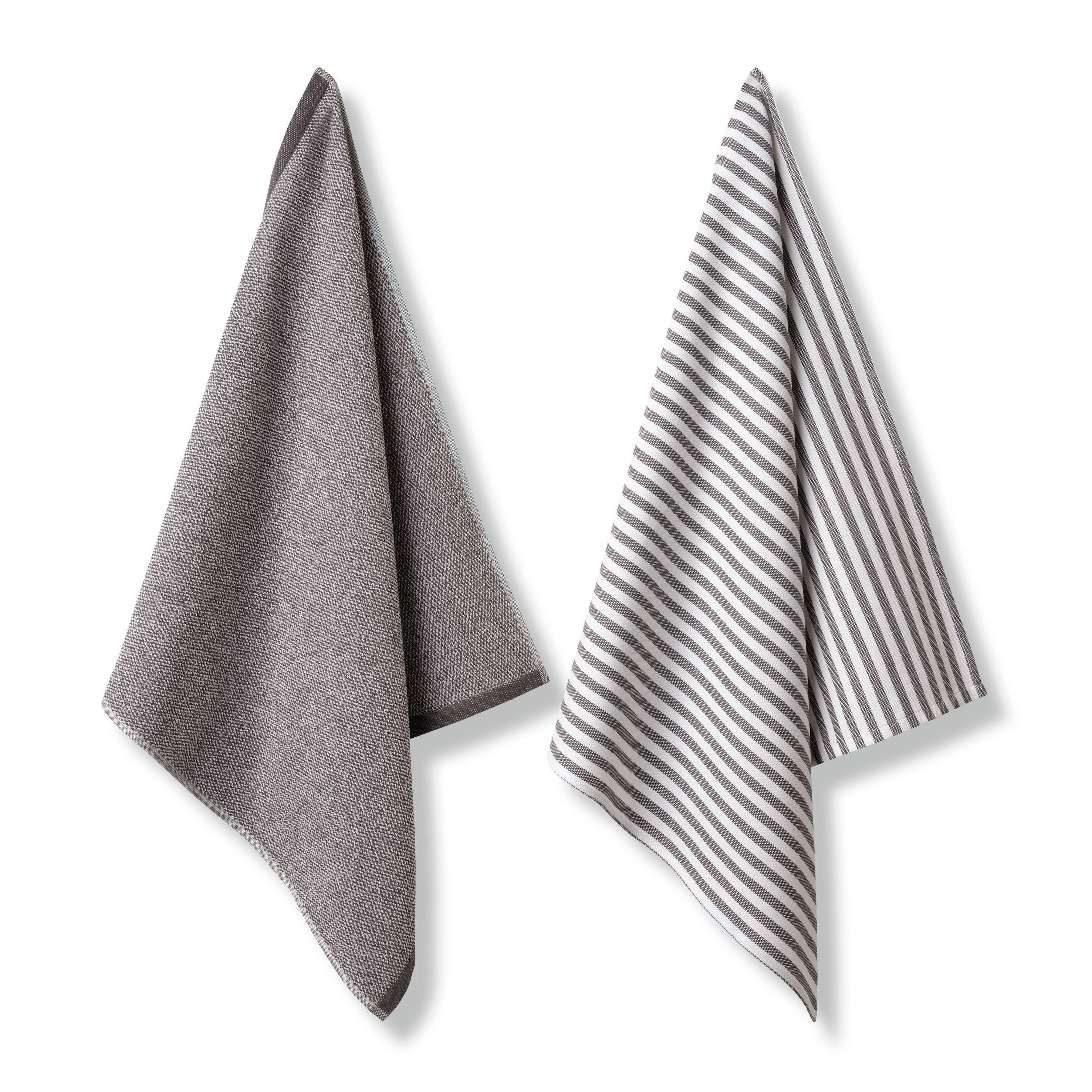 Leuke Keukenset van Vandyck bestaande uit een keukendoek (badstof) en een theedoek. De keukendoek heeft een gemêleerd effect en de theedoek een ingeweven streep. Met ophanglus.