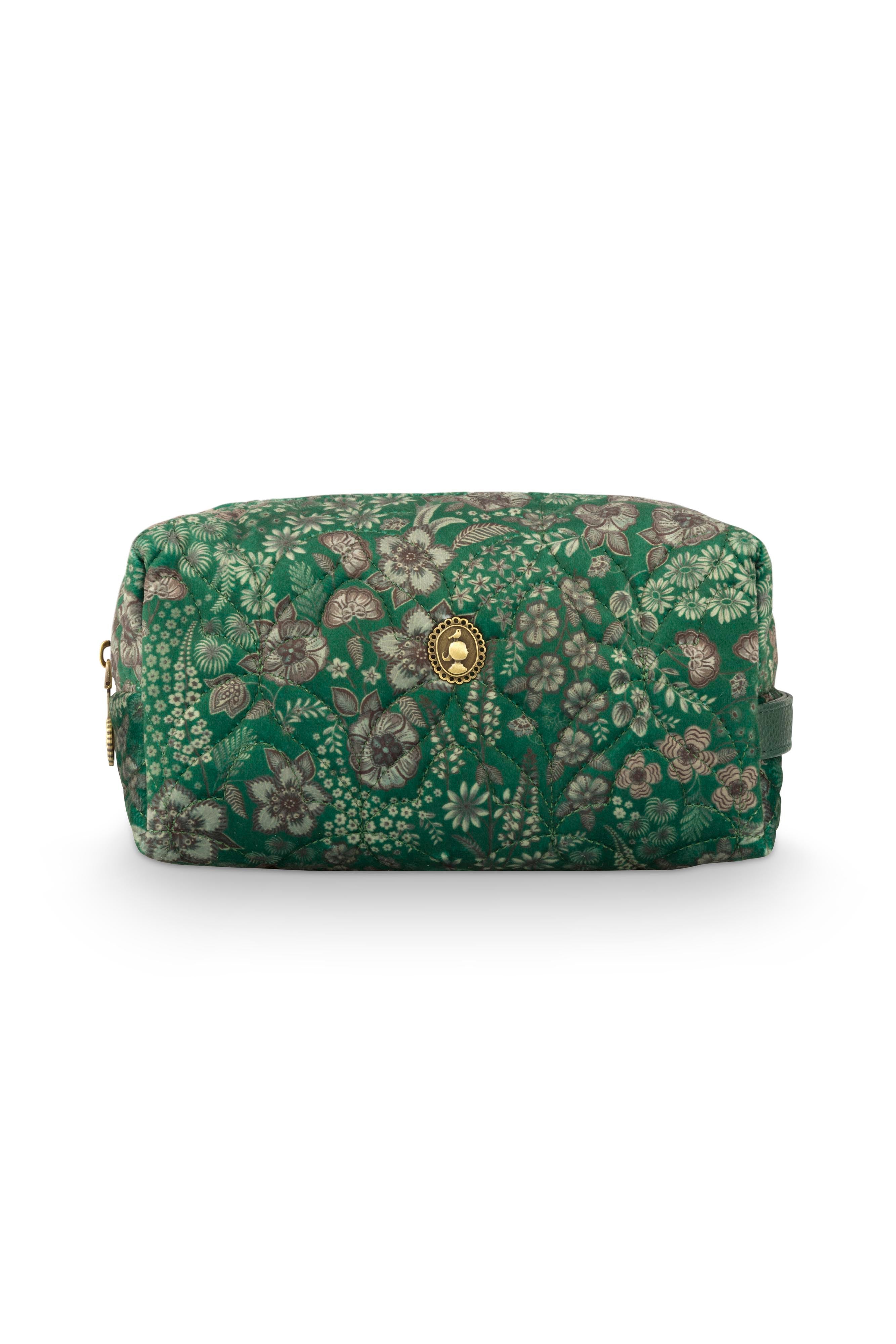 Toilettas Coco Daisy Green is perfect voor dagelijks gebruik in je badkamer en om mee te nemen op reis. Het heeft aan de binnenkant handige extra opbergvakjes. De toilettas heeft een bloemetjes dessin met ornamentjes gecombineerd. De buitenstof is van velvet (velours) kwaliteit wat een luxe uitstraling geeft.